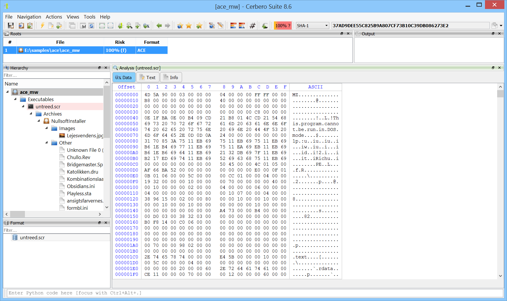 ACE is a compression format that was widely popular in the late 1990s and early 2000s. While largely superseded by more modern formats, ACE files still appear regularly in malware analysis and digital forensics investigations. Having native support in Cerbero Suite means analysts no longer need to rely on external tools to inspect these archives.