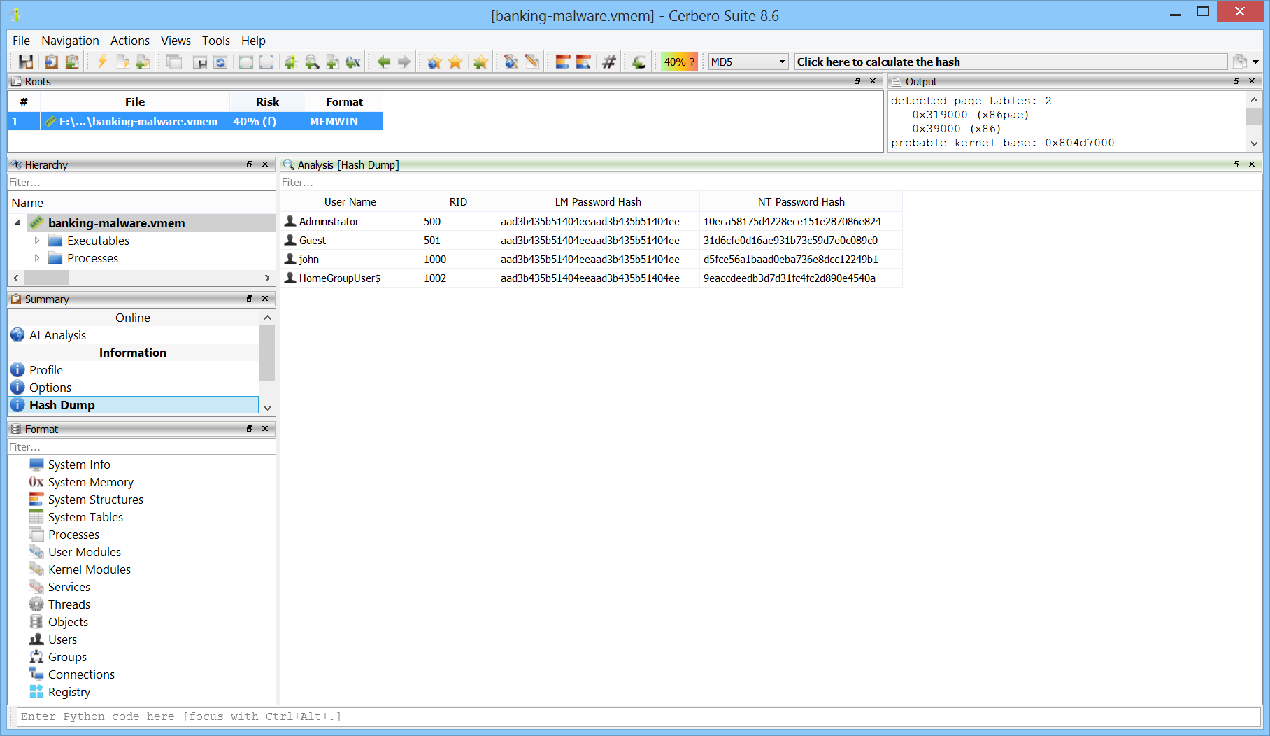 NT/LM password hashes are now decrypted automatically, allowing them to be exported and cracked using tools such as hashcat or John the Ripper Jumbo.