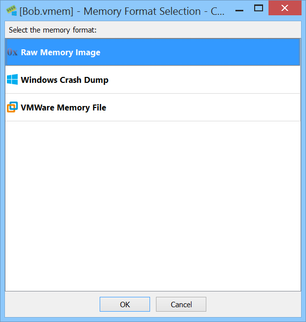 The VMWare VMEM format is now fully supported. Although VMEM files can sometimes represent raw memory, they sometimes rely on an accompanying VMSS (VMWare Suspended Status) file to properly reconstruct memory mappings.